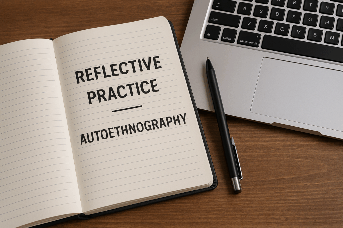 When reflective practice and autoethnography are combined, the hybrid nature of the approach means it is sometimes discussed under different names, each highlighting slightly different emphases. One of the most common is “reflexive autoethnography”, which foregrounds the reflective dimension of autoethnographic writing. Here, the act of revisiting one’s own practice is not only narrative but explicitly critical, encouraging students and practitioners to question how their positionality shapes both their work and its reception.